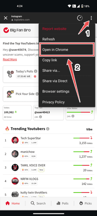 Open the BigFanBro app anytime to vote, track YouTubers, and see live rankings right from your home screen!